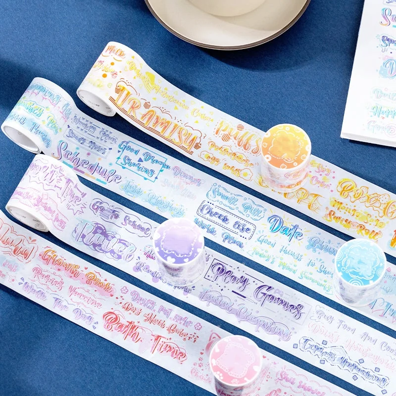 What sets our Daily Life Words Washi Tape apart is its unique 4-color process printing technology coupled with specialty inks. Each design cycle spans an impressive 350 mm (13.8 inches), ensuring that you’ll have ample tape for your projects. The result? Stunningly detailed patterns and vibrant colors pop off the page, transforming your creations into visual masterpieces.
