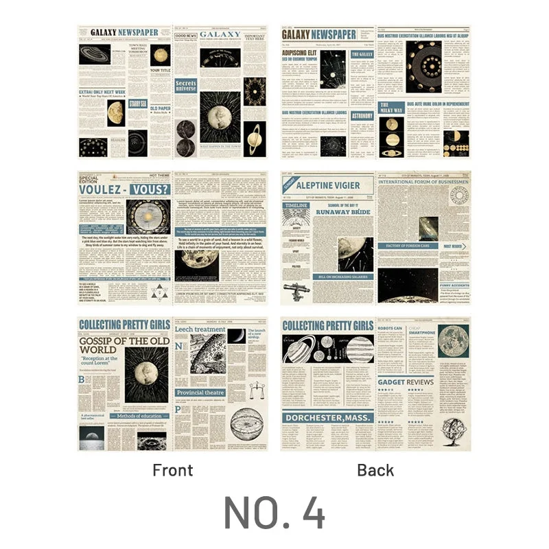 The double sided vintage large newspaper scrapbook paper is made of fine, high-quality lightweight paper, which can be cut and torn by hand. A total of 8 styls, sold in packs with each pack containing 6 pieces in 3 designs. The plentiful patterns provide multiple choices for decoration and collage needs. It’s perfect for scrapbooking, journaling, collaging, decorating greeting cards, books, invitations, packaging gifts, or DIY crafts.
