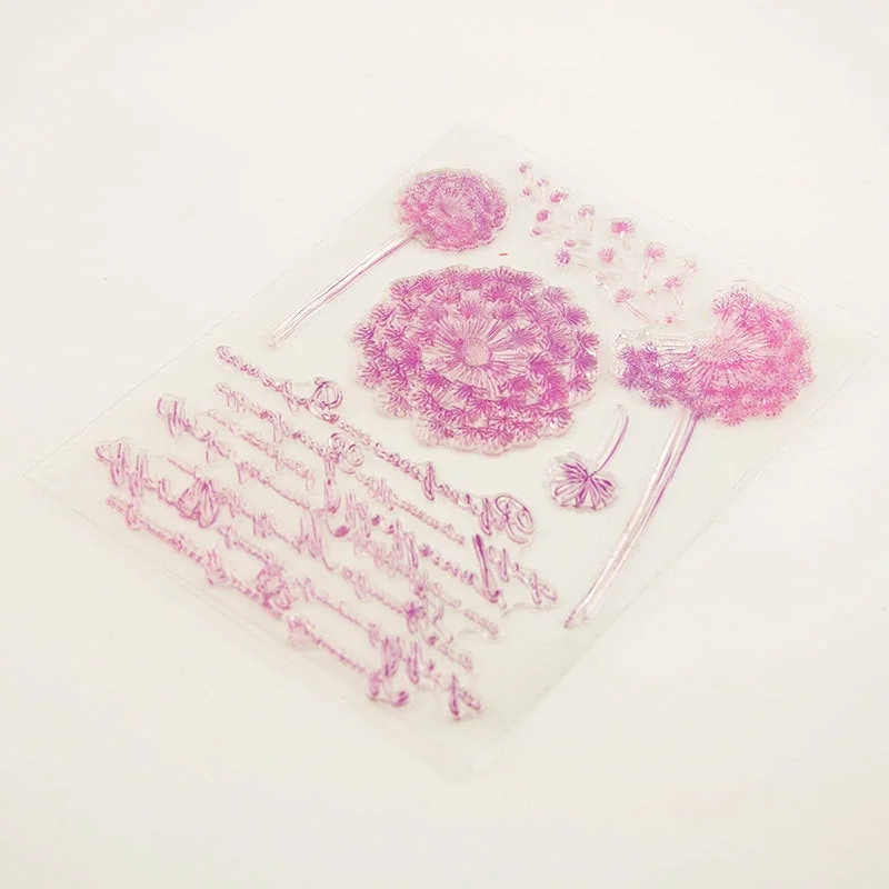 Our Clear Silicone Stamps are made from premium-quality, flexible, and durable material that makes them easy to clean and reuse. Their non-stick surface ensures you get a clean impression each time, while the clear silicone material allows for accurate positioning on your project. These dandelion-inspired stamps and warm word stamps are not only charming but designed to help you express your feelings and make memories that last.