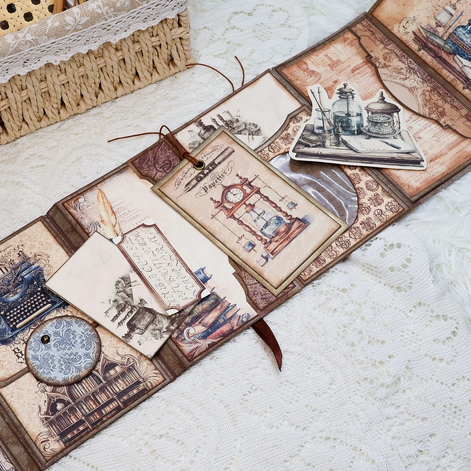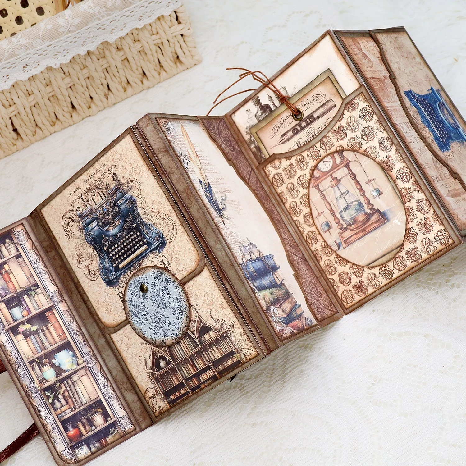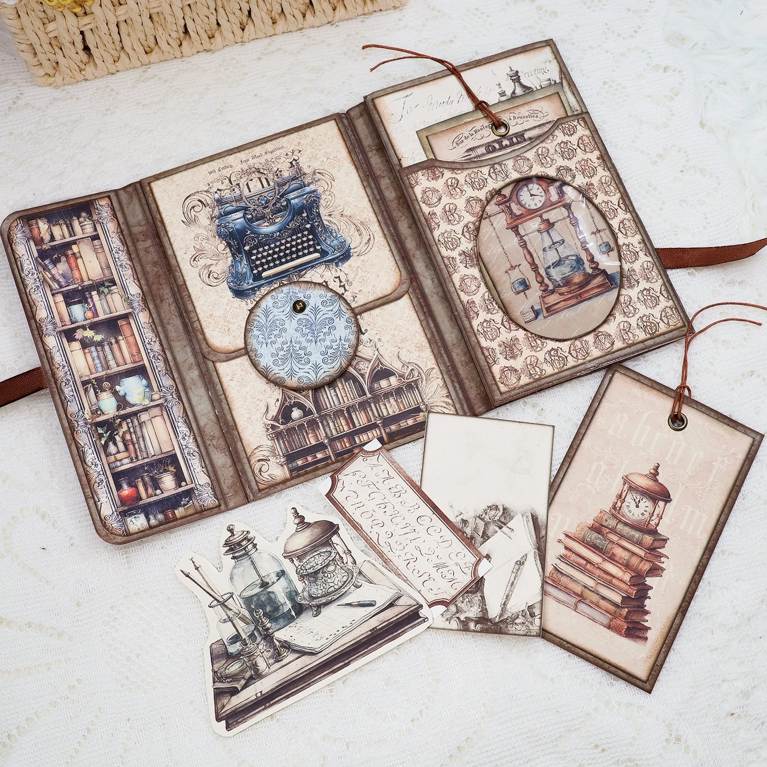 Great for layering! The Dark Academia Writer Mini Folio Booklet Handmade Junk J papers stack beautifully and create wonderful depth in card and scrapbook projects.