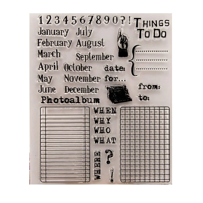 Each set includes a single silicone stamp that can be effortlessly torn off and placed onto an acrylic board, creating a separate rubber stamp. Say goodbye to cluttered schedules and hello to the perfect planning solution. Our silicone stamp features a delightful assortment of months, letters, and blank forms, making it the ideal choice for planners who love to personalize their schedules and add artistic touches to their projects.