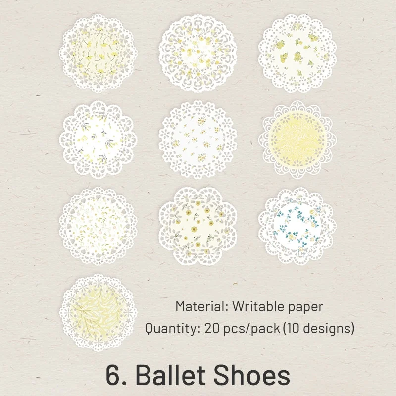 With a package size of 105 x 135mm (4.1 × 5.3″), these papers are compact and portable, making them ideal for on-the-go creativity. Let your imagination dance and flourish as you explore the exquisite designs of the Photo Album, the elegance of Ballet Shoes, the charm of an Afternoon Tea, and the whimsy of a Lace Umbrella. The Elegant Melody Series Vintage Lace Paper Pack is a treasure trove of inspiration, ready to infuse your artistic pursuits with grace and beauty.