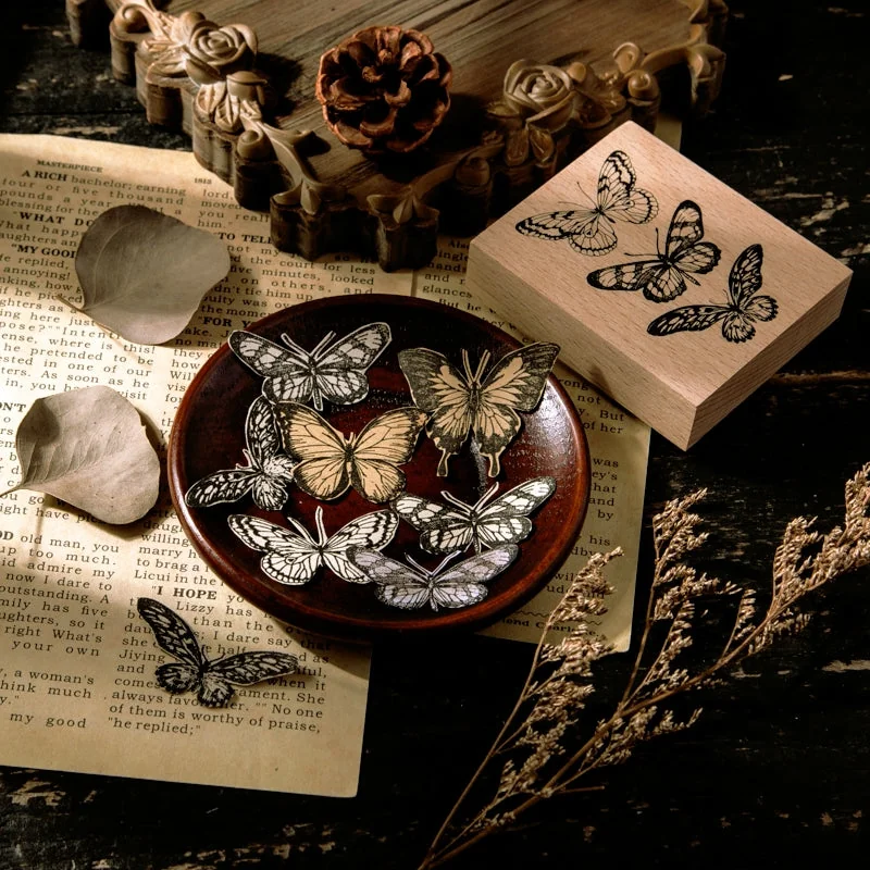 Unleash your inner explorer and take a step into the world of vintage specimens with our Explorer Specimen Series Vintage Hollow Wooden Rubber Stamps. Crafted from high-quality beech wood and rubber, these stamps showcase a beautiful collection of intricate designs, inspired by the fascinating world of butterflies, frames, and mirrors. With eight unique designs to choose from, these stamps are perfect for adding an elegant and timeless touch to your crafting projects.