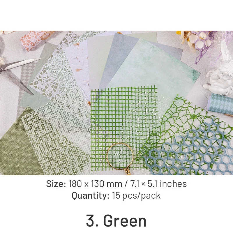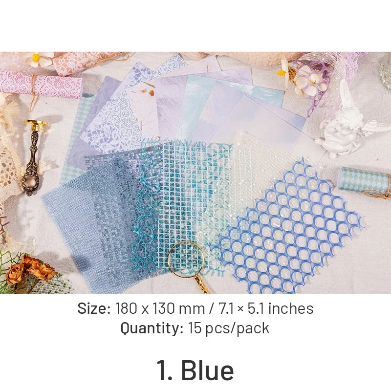 Gorgeous watercolor-friendly paper! The Fancy Net Mixed Material Decorative Paper Package collection handles wet media beautifully without buckling or warping.