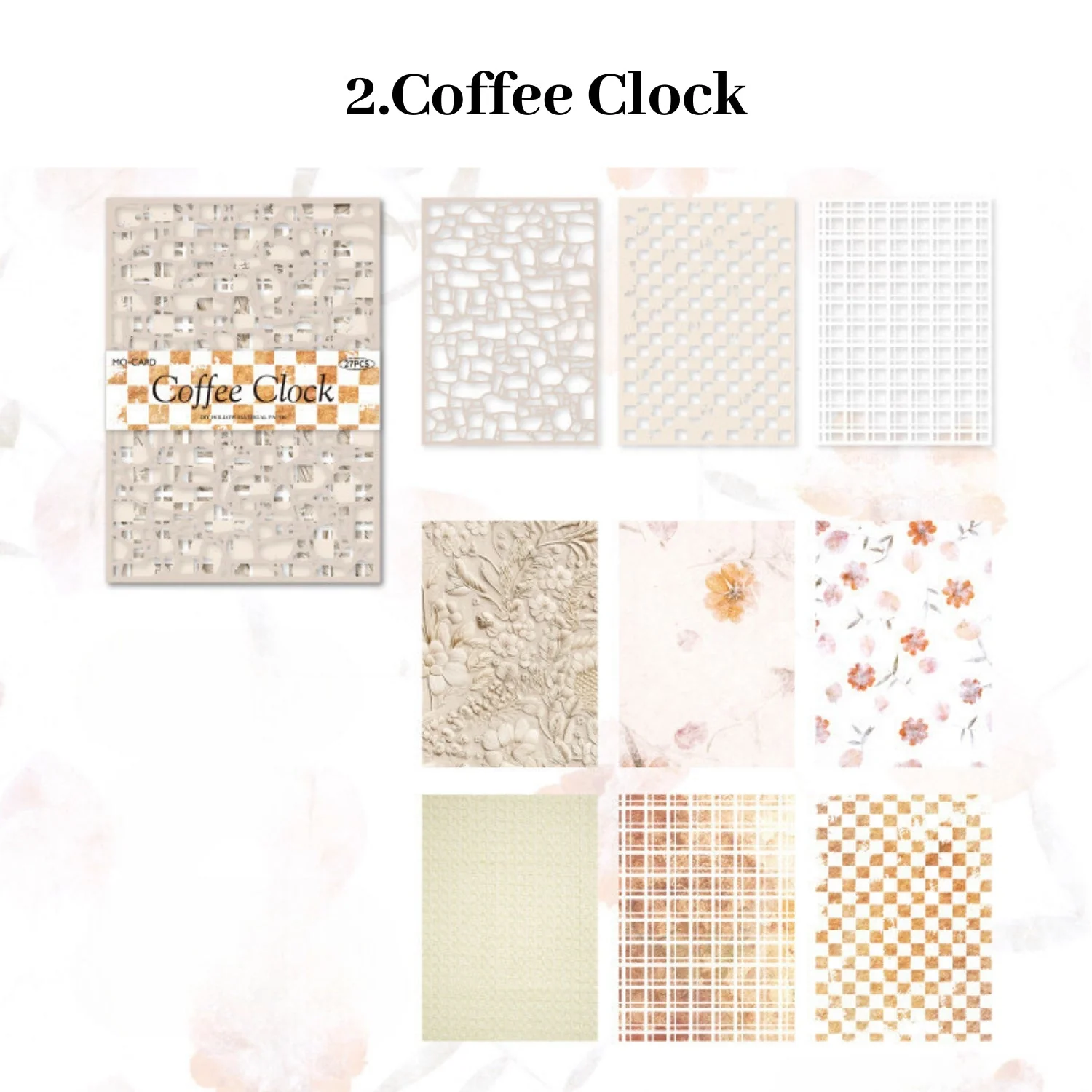* Variety of Styles: The package includes 27 sheets divided into 6 captivating styles: Sakura Letter, Coffee Clock, European Flower and Leaf, Butterfly Iris, Letter Music, and Star and Moon Lace. These themes offer a blend of cultural and natural motifs, perfect for diverse artistic expressions.
