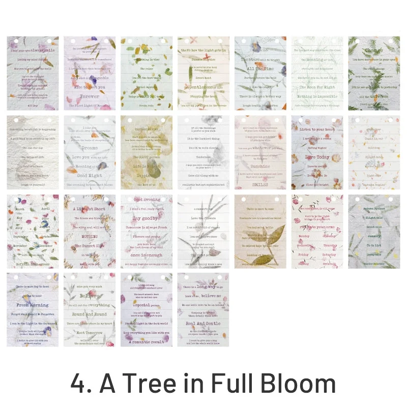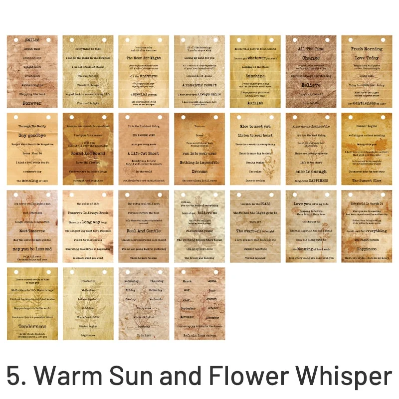 Choose from 6 exquisite styles, including floral, botanical, and coffee-dyed patterns. Each pack contains 25 sheets, offering a total of 175 artfully designed strips. Every strip showcases a short, meaningful sentence or spiritually inspiring words.