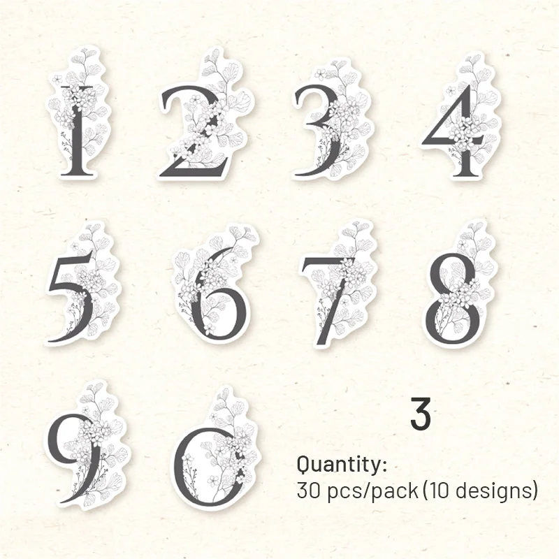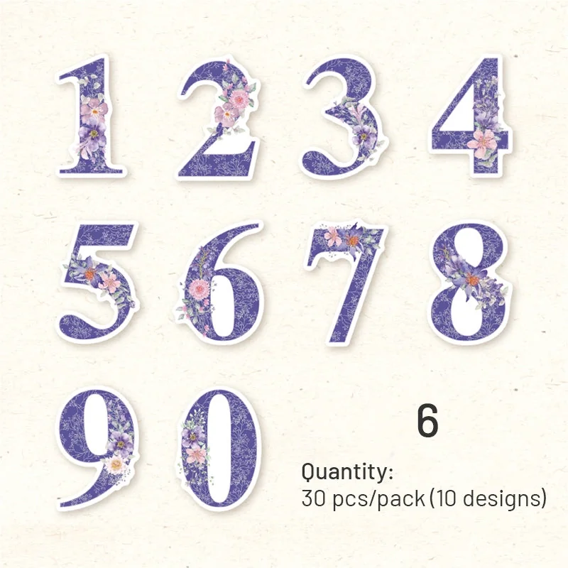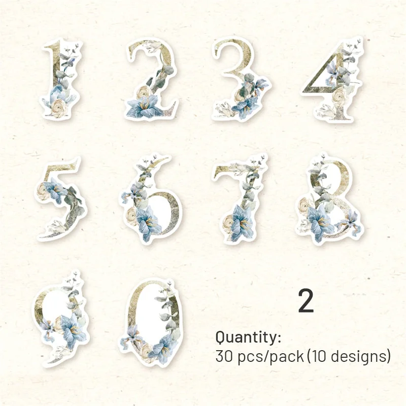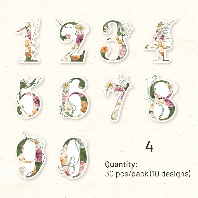 Elevate your crafting projects with our Floral Number Washi Stickers! This pack features 30 charming stickers showcasing numbers 0 through 9 adorned with intricate floral designs. With 10 unique floral-themed patterns, these stickers offer endless creative possibilities for adding a touch of whimsy and elegance to your crafts. Crafted from high-quality washi material and featuring matte printing, these stickers are perfect for embellishing planners, journals, scrapbooks, and more. Let these floral numbers inspire your creativity and bring a delightful botanical twist to your projects.