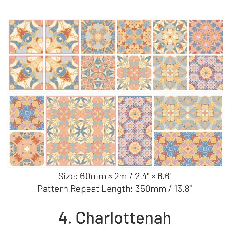 The intricate designs of the Floral Tile Pattern Collection will mesmerize you with their intricate details and vibrant colors. Each roll features a unique pattern inspired by nature, culture, and heritage. From the tranquil Blue Ocean design to the enchanting Violet Vine, and from the timeless charm of The Al Family to the regal beauty of Charlottenah, there’s a tape style to suit every aesthetic preference.