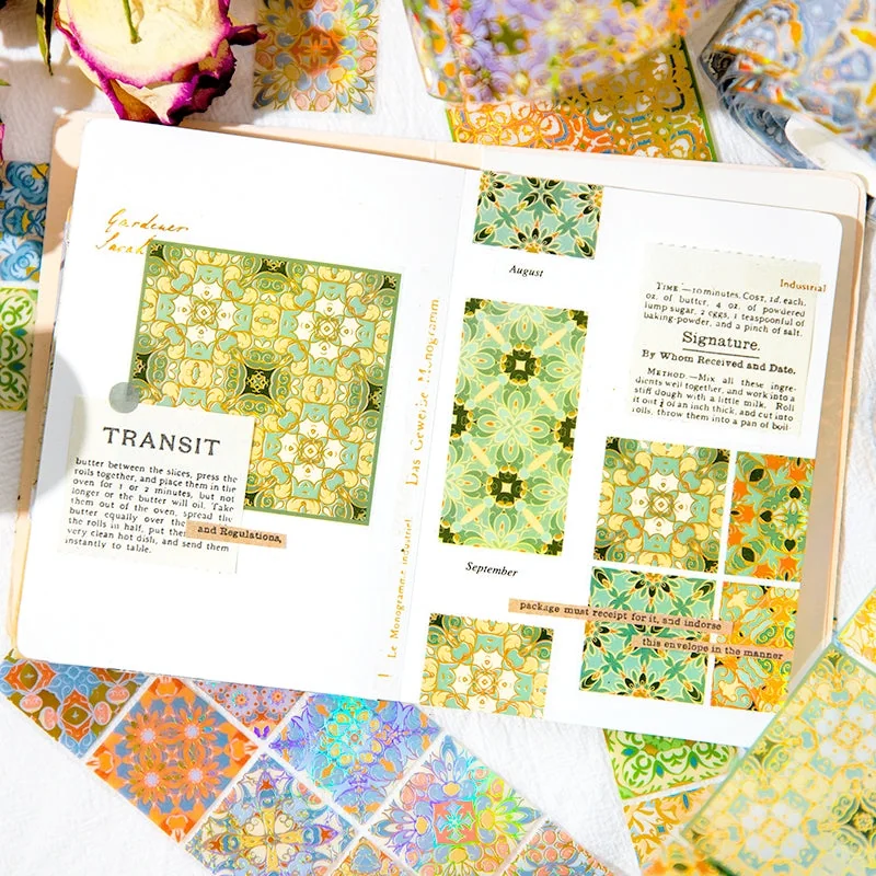 Unleash your creativity with the Floral Tile Pattern Collection Decorative Polyethylene Terephthalate Tape. This versatile tape is perfect for various applications, such as scrapbooking, journaling, gift wrapping, and home decor projects. Let your imagination soar as you embellish photo albums, personalize stationery, adorn gift boxes, and bring a touch of elegance to everyday objects.