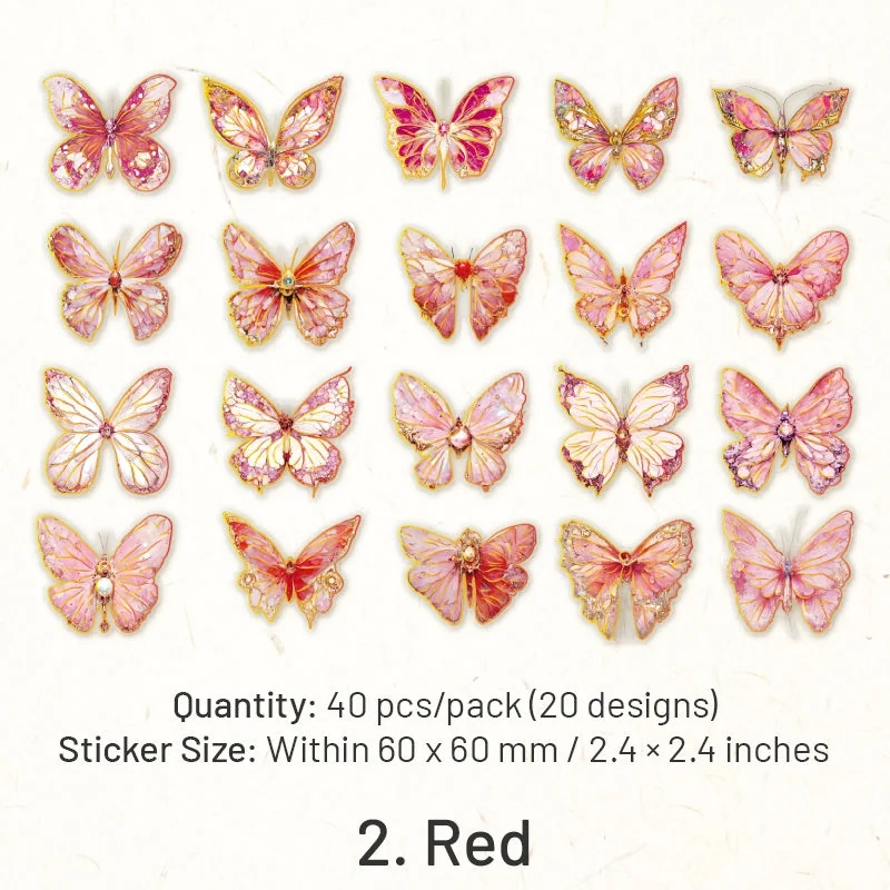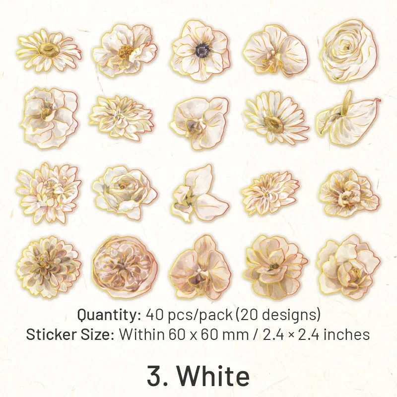 Welcome to our enchanting collection of “Flower and Butterfly Gold Foil Polyethylene Terephthalate Stickers,” where each SKU boasts a unique theme color and a captivating design. Whether it’s butterflies or flowers, each sticker is meticulously crafted using the hot gold foil and mold cutting process. This ensures that the main contours of the butterflies and petals are delicately highlighted, adding an extra layer of intricacy to these charming stickers. With 40 stickers per pack, featuring 20 designs, these stickers are perfect for adding a touch of elegance and whimsy to your crafting projects. Crafted from durable Polyethylene Terephthalate material and packaged in a compact size, they are ready to adorn your gifts, cards, journals, and more with their beauty and grace.