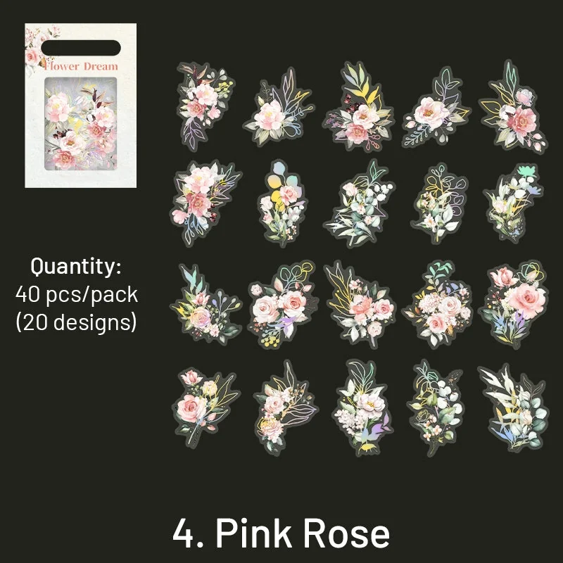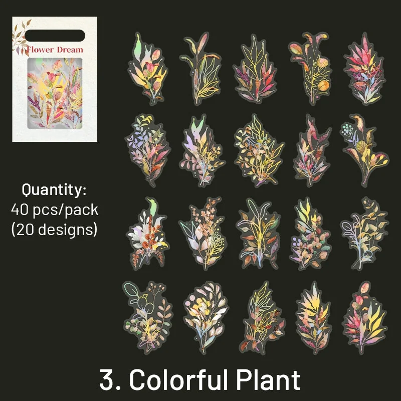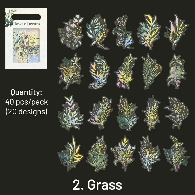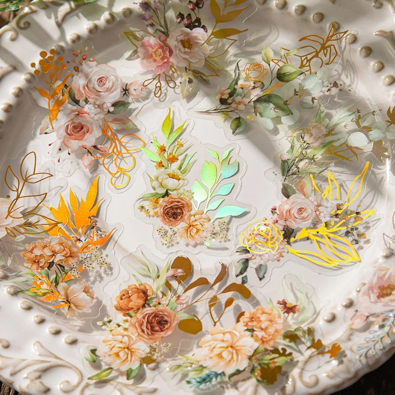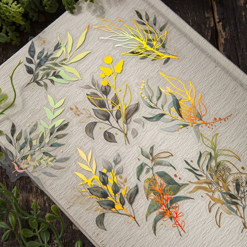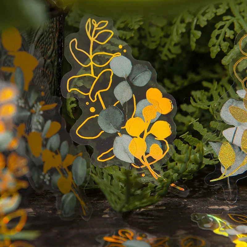 Flower and Plant Holographic Hot Stamping Clear Transparent Stickers - Eucalyptus, Grass, Rose, Bouquet, Daisy