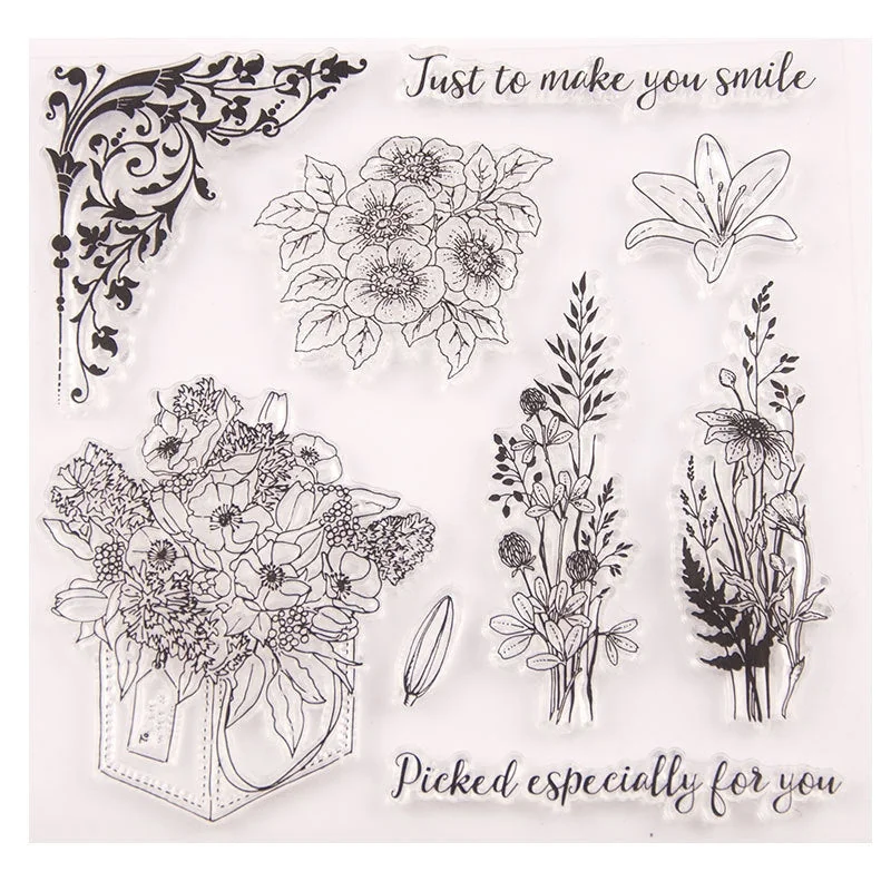 Indulge your passion for floral artistry with our Flower Clear Silicone Stamp! Immerse yourself in a world of botanical beauty as you explore the intricate designs and delicate details of this stunning stamp. With a size of 150 × 150 mm, this stamp showcases a captivating array of flower-themed patterns, from single blooms to lush bouquets, each exquisitely crafted to inspire your creativity. Whether you’re adorning greeting cards, embellishing scrapbook layouts, or enhancing journal pages, these stamps offer versatility and precision to elevate your crafting experience. Let your imagination blossom and transform your projects with the enchanting charm of our Flower Clear Silicone Stamp!