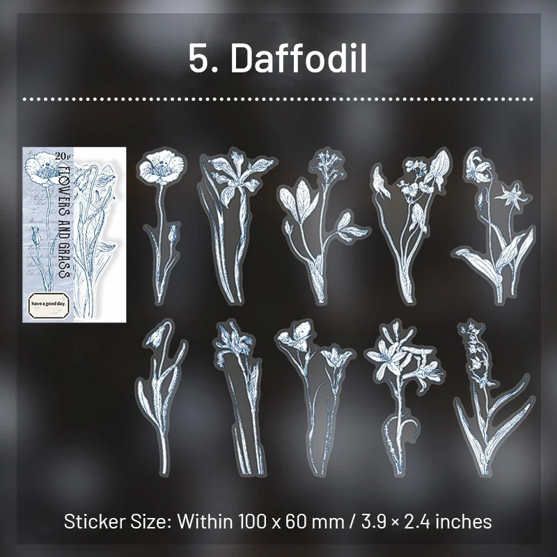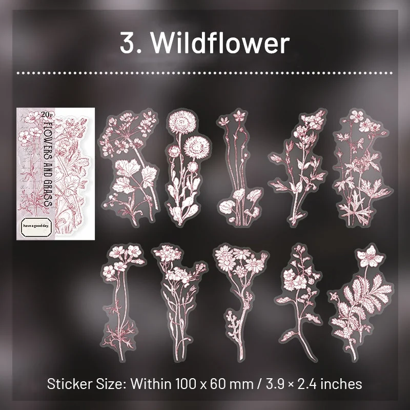 This pack includes 20 captivating stickers, featuring 10 unique designs that celebrate the richness of nature. With each sticker measuring within 100 x 60 mm (3.9 × 2.4 inches), they provide ample space for your creative expressions.