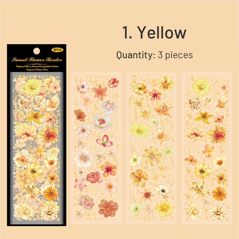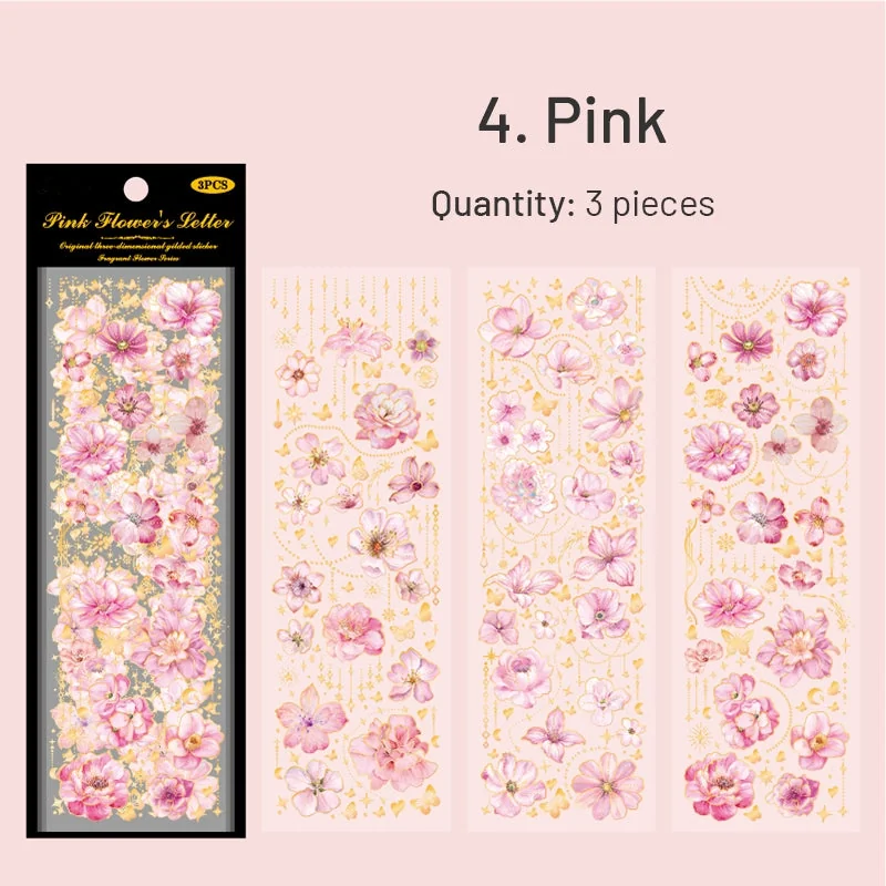 Introducing our exquisite Flower Hot Stamping Gold Sticker Sheets, a perfect addition to your crafting arsenal. Each pack contains three sheets adorned with stunning floral designs, meticulously crafted using hot stamping gold technology. With a package size of 180 x 60 mm, these sticker sheets offer versatility and convenience for various crafting projects.