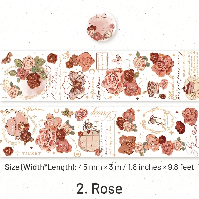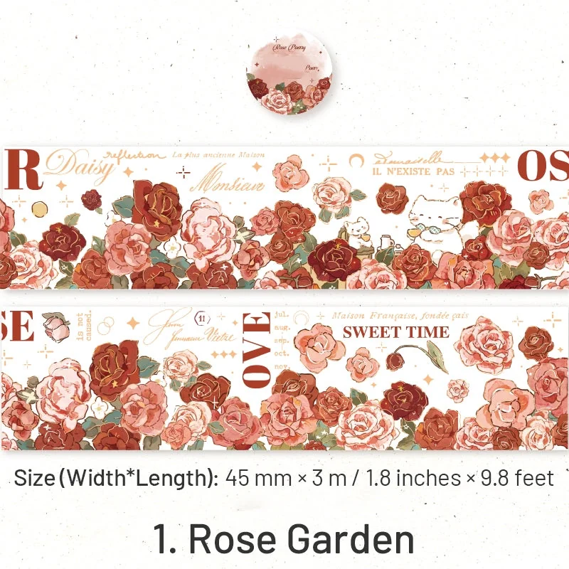 Welcome to a world of exquisite beauty and artistic creativity with our Flower Theme Botanical Foil Stamped Polyethylene Terephthalate Tape. This remarkable tape is a testament to the harmonious blend of art and functionality. Crafted from durable Polyethylene Terephthalate material, each roll is a masterpiece in itself, measuring 45mm in width and extending to a generous length of 3 meters (that’s approximately 9.8 feet). Whether you’re a crafting enthusiast, a decorative connoisseur, or a DIY maven, this tape is designed to bring your visions to life.
