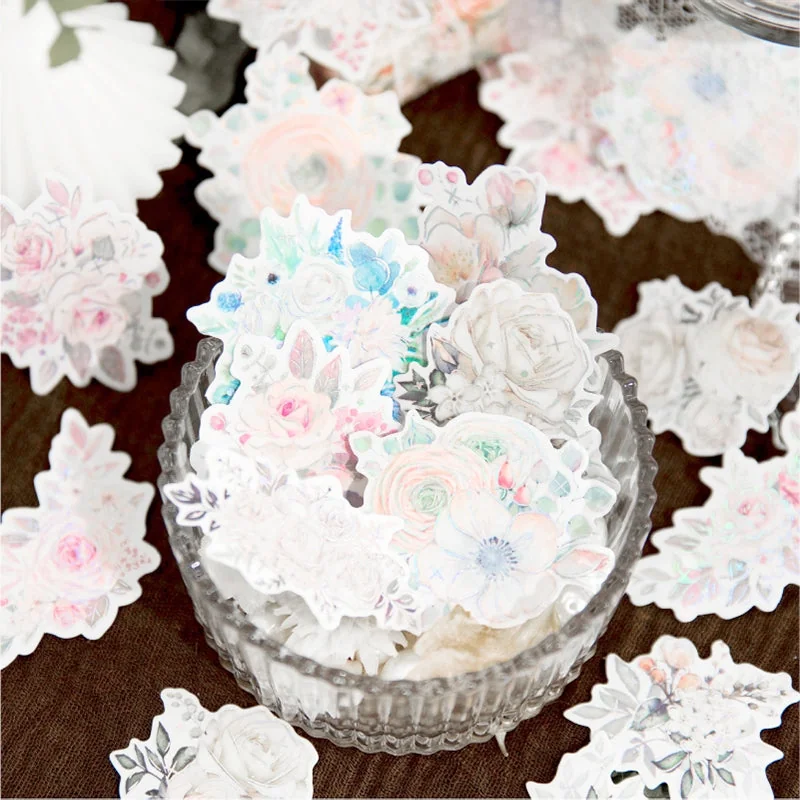 These washi stickers are adorned with special die-cutting and holographic hot stamping technology, adding a touch of shimmer and elegance to your creations. Their smooth tearing feature ensures easy application, allowing you to effortlessly layer and collage them to achieve your desired aesthetic. Whether you’re a floral enthusiast or simply appreciate the charm of botanical elements, these stickers are sure to bring a burst of color and joy to your crafting projects.