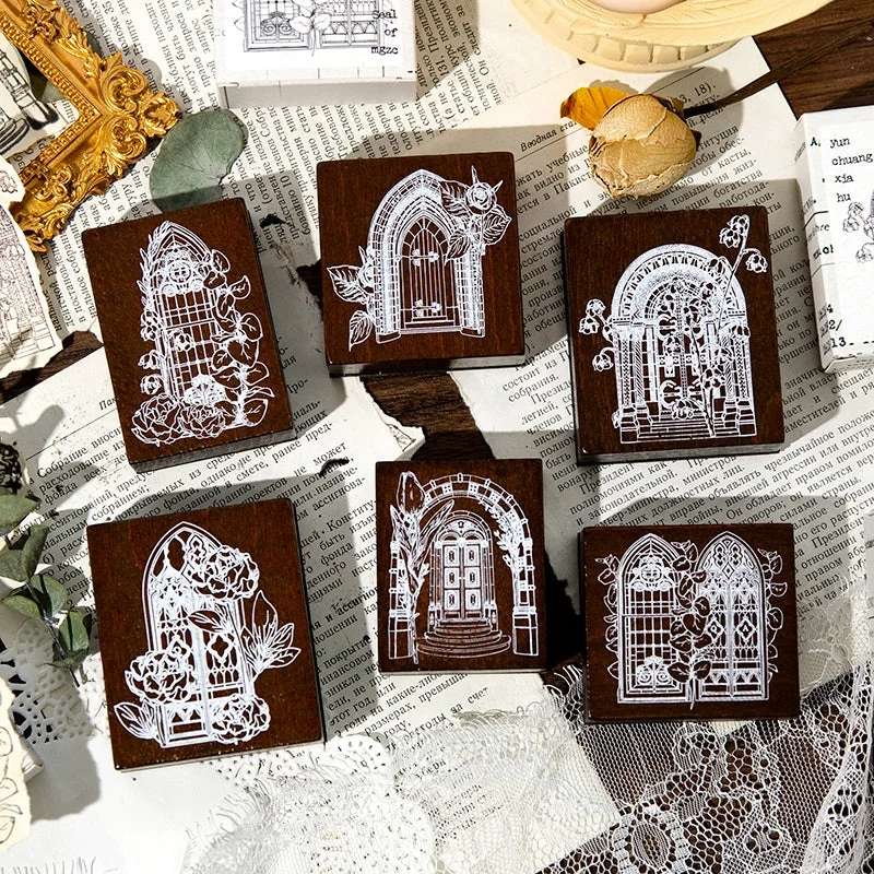 Flowers Outside the Window Series Window Theme Wooden Rubber Stamp