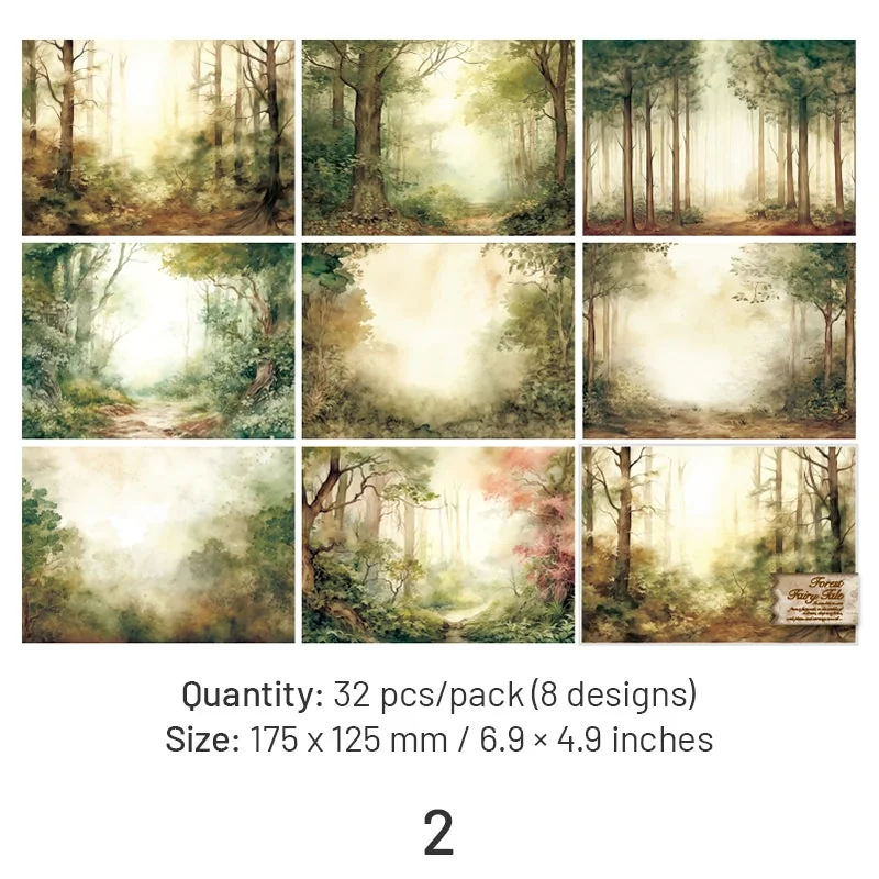 Step into a whimsical world of enchantment with our Forest Fairy Tale Background Scrapbook Paper! Each pack features 32 sheets of lightweight paper, adorned with 8 captivating designs inspired by the mystical allure of the forest. Immerse yourself in the lush greenery of woodland landscapes, bask in the warm glow of golden sunsets, or wander through misty forests teeming with magical secrets. From vibrant blooms to whimsical mushrooms, these papers capture the essence of nature’s beauty in every detail, offering endless inspiration for your creative endeavors.