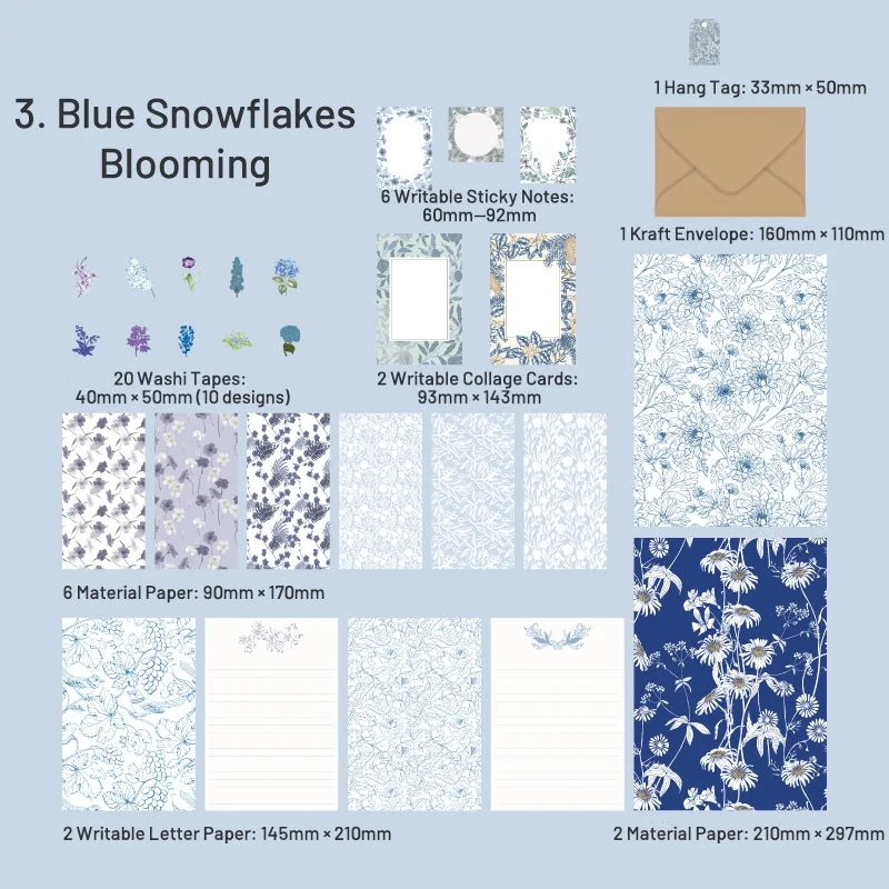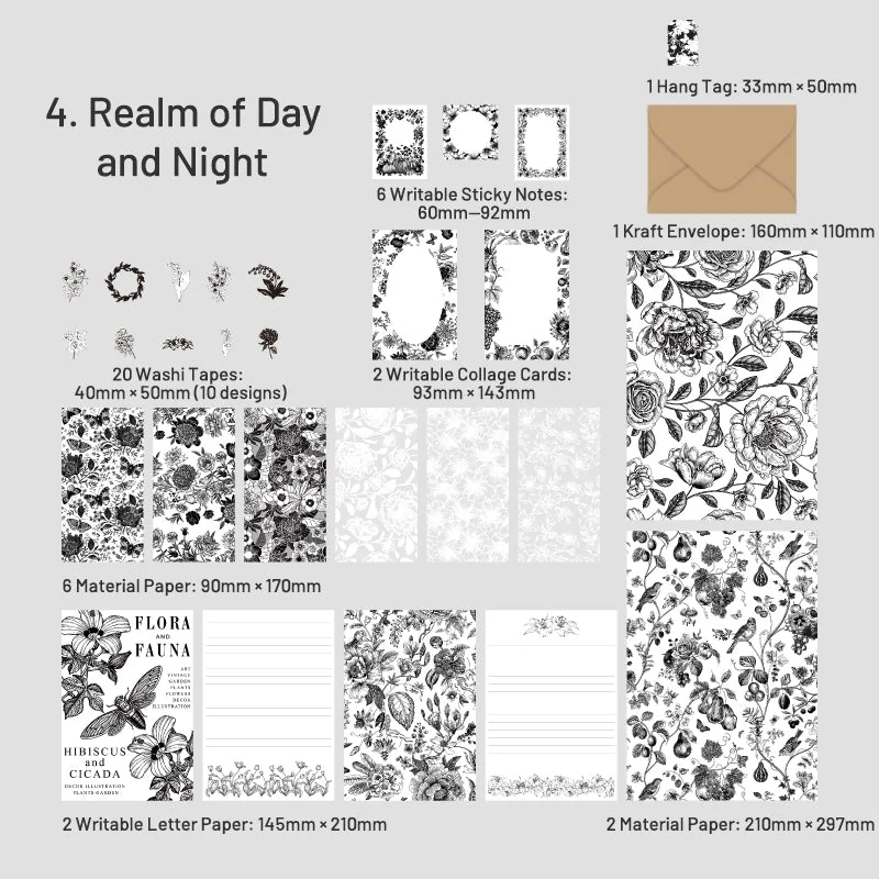 Unleash your imagination as you embark on creative endeavors, from scrapbooking to journaling, card-making to collage. The Forest Letters Series Vintage Hand-Painted Plant Paper Pack offers boundless possibilities to embellish and adorn your world with its four captivating styles. Enter the Twilight Forest, wander through the Rose House, witness Blue Snowflakes Blooming, or immerse yourself in the ethereal Realm of Day and Night. Let these vintage elements inspire you to craft a beautiful life filled with art and nostalgia.