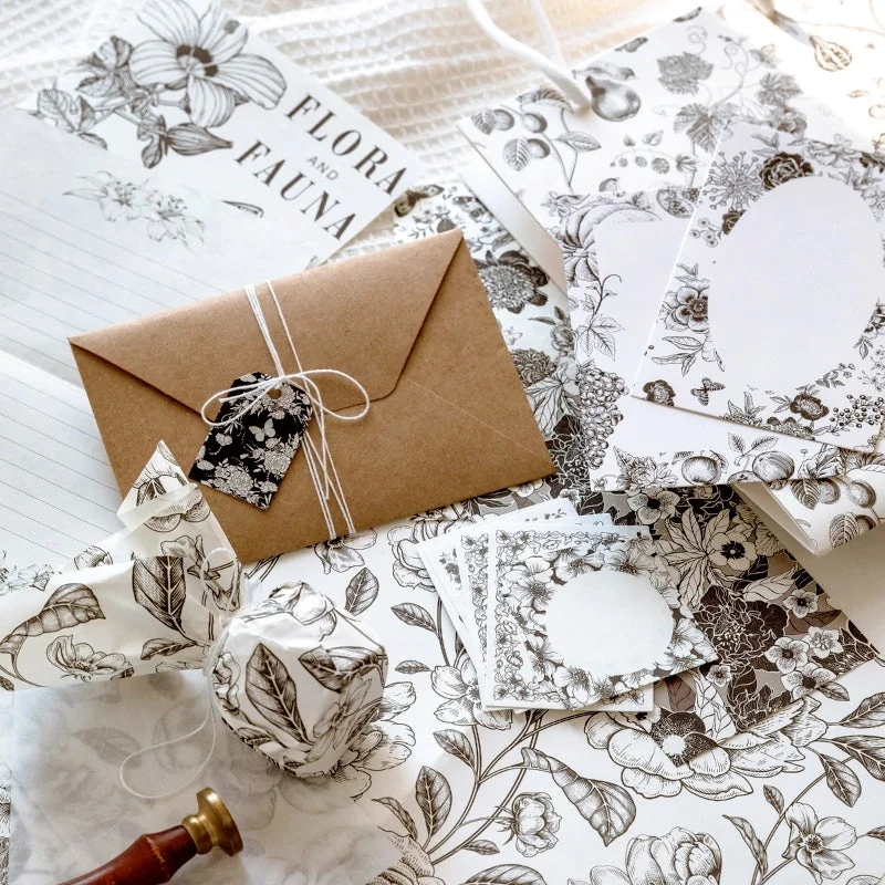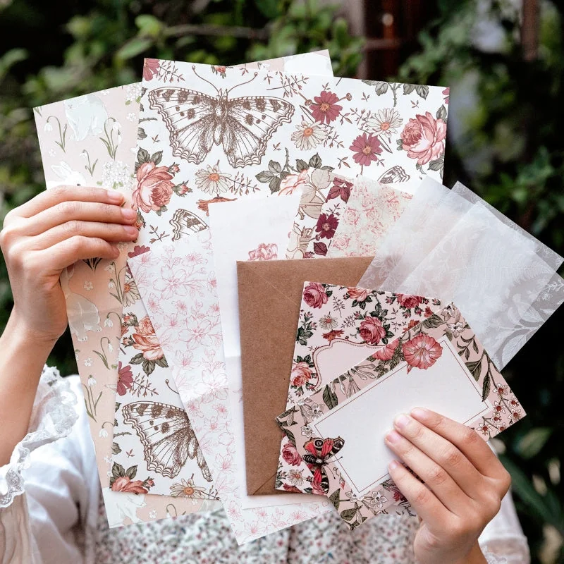 Crafted with utmost care, this pack boasts a medley of materials, including Washi, lightweight paper, and tracing paper. The eight sheets of high-quality paper provide a smooth and sturdy surface for your creative expressions. Enhance your designs with the collage cards, sticky notes, tags, and stickers, featuring a total of 20 charming vintage elements, including roses, lilies, ferns, etc. Two sheets of letter paper and a kraft envelope complete the set, making it perfect for heartfelt correspondence.