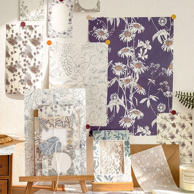 Immerse yourself in the enchanting world of the Forest Letters Series Vintage Hand-Painted Plant Paper Pack, where creativity and nostalgia intertwine. This exquisite pack is a treasure trove of vintage hand-drawn materials that will transport you to a bygone era. With diverse styles and meticulous printing, each piece exudes an natural charm that adds a touch of elegance to your artistic endeavors.