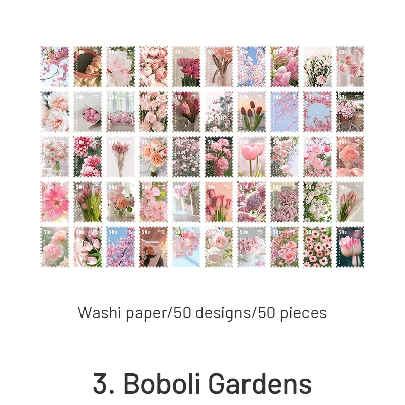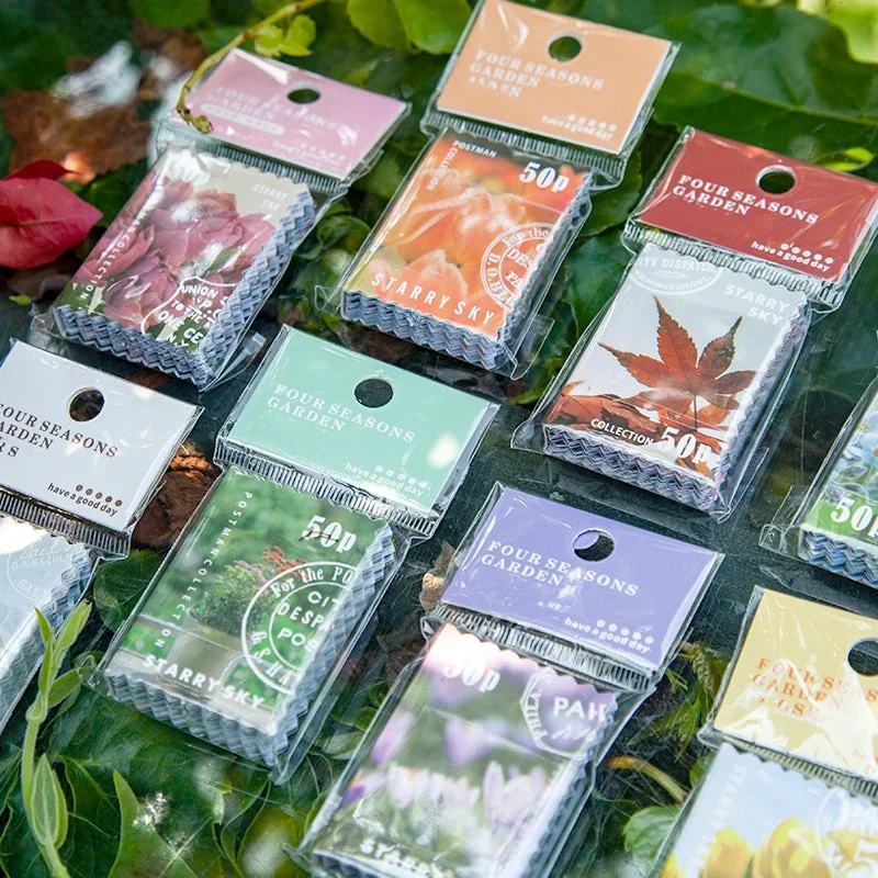 Step into a whimsical world of nature with the Four Seasons Garden Series Stamp Sticker Book. This delightful book features 50 exquisite stickers, each capturing the beauty of a different garden from around the world. Made with delicate and tough washi paper material, these stickers are a testament to craftsmanship and attention to detail. Measuring 35 x 50mm, these stickers are perfect for adding a touch of enchantment to your scrapbooks, journals, cards, and other creative projects. With adhesive backing, simply tear off and stick them wherever your imagination takes you.
