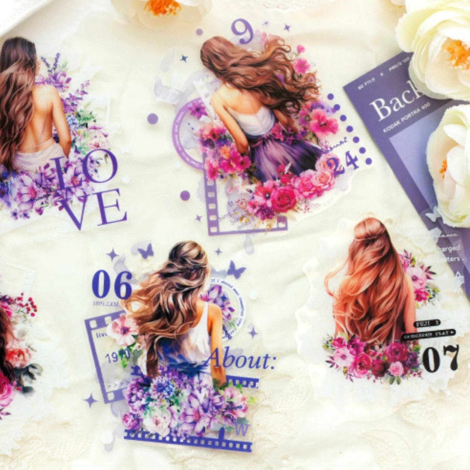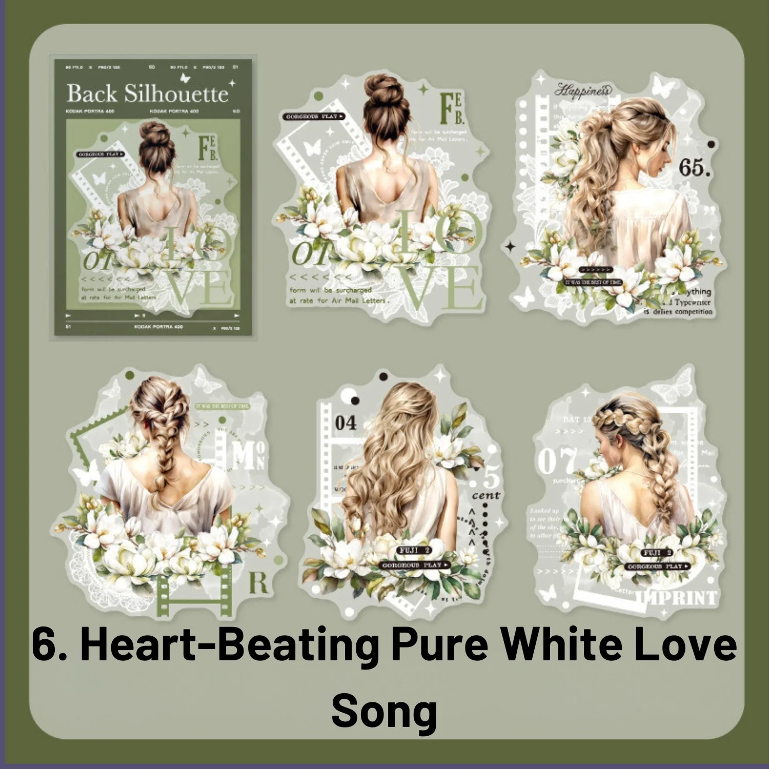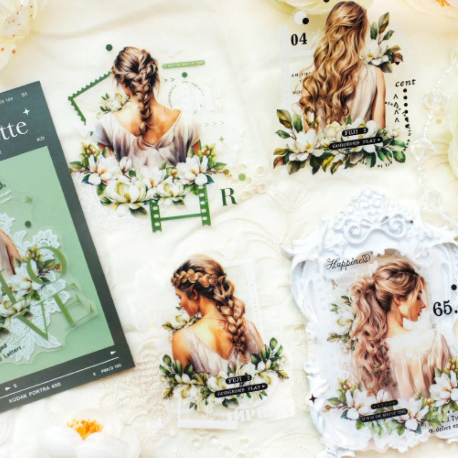 Discover the charm and elegance of the Freeze-Frame Back Series Character Material Sticker Pack, designed for enthusiasts of personalization and DIY projects. This pack features a collection of beautifully crafted stickers that blend European style with vibrant, retro aesthetics, perfect for enhancing your creative projects or personalizing your space.