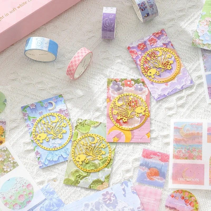 Inside the set, you’ll find 96 sheets (192 pages) of the B6 Notebook. The magnetic buckle design ensures your notebook remains secure and accessible. To make your creative journey even more vibrant, the set includes 100 sticky notes in an array of macaron colors, a metal bookmark for easy page marking, and an assortment of stickers, both in Washi paper and Polyethylene Terephthalate material. The six rolls of tape, featuring various widths and patterns, allow you to add decorative touches to your journal pages. The Fresh Macaron Color Journal Gift Box Set is not just an artistic endeavor but a wonderful gift for both seasoned and budding artists.