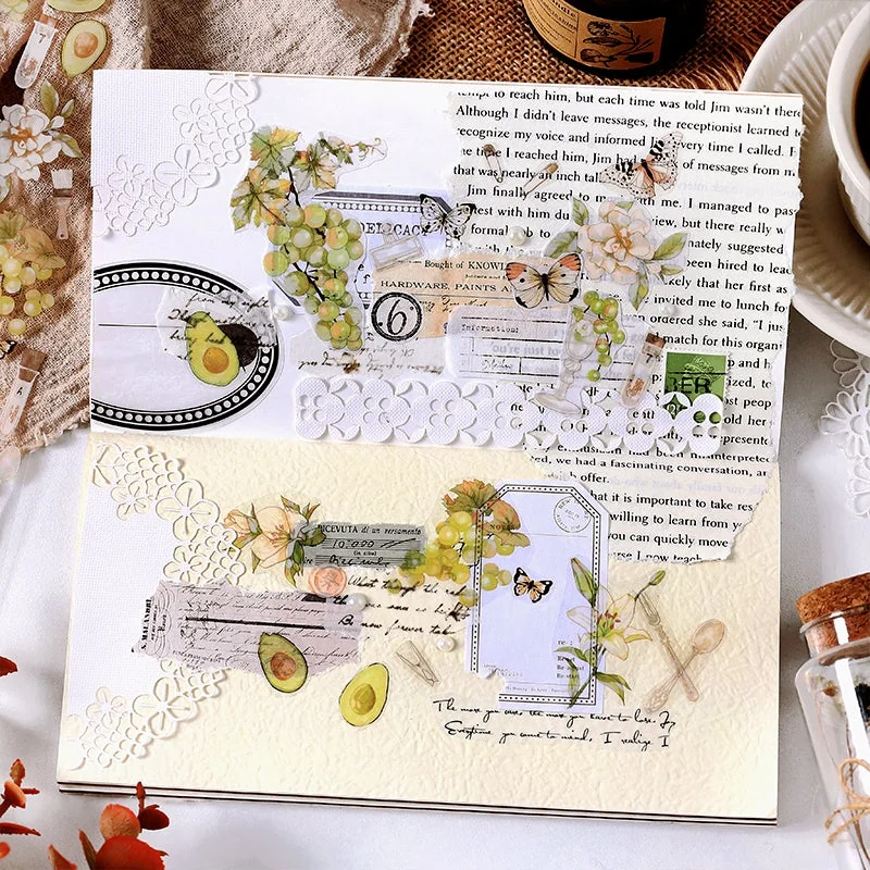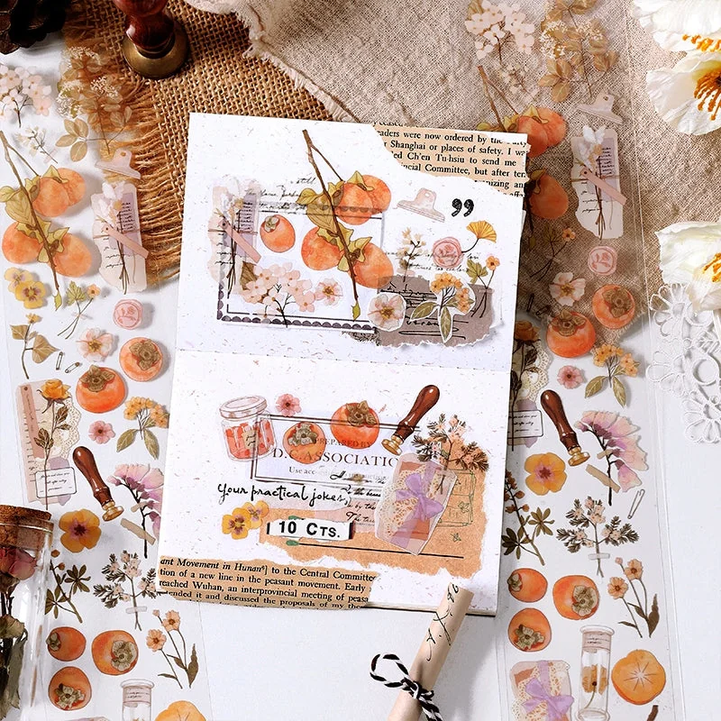 Fruit Clear Transparent Clean Stickers - Grape, Passion Fruit, Pomegranate, Persimmon