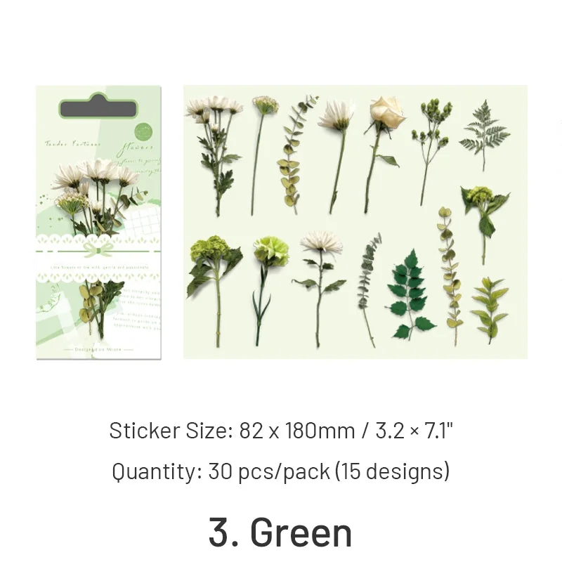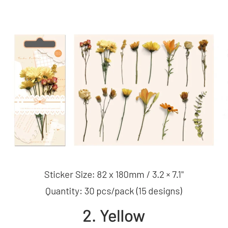 Immerse yourself in a world of botanical beauty with our enchanting Gentle Bliss Series Retro Plant Flower Stickers. Crafted from high-quality Polyethylene Terephthalate material, these stickers captivate with their irregular shapes, adding a touch of whimsy and uniqueness to your creative projects. With 30 stickers in a pack, featuring 15 exquisite designs, you’ll have a wide array of floral options to inspire your artistic endeavors.