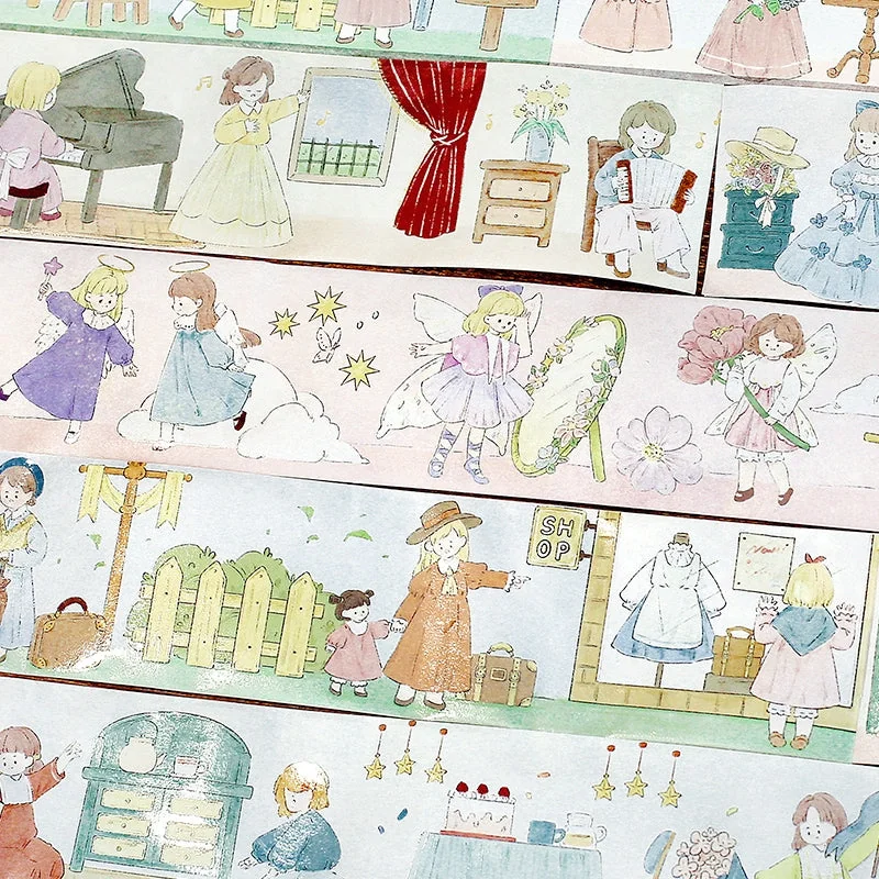 Unleash your creativity with the Girl Cartoon Washi Tape in captivating themes of People, Music, Fairy, and Party. This whimsical washi tape isn’t just any ordinary tape; it’s an artistic medium that can transform your projects into something truly enchanting. Each roll is designed with precision and care, making it a must-have for craft enthusiasts and art lovers.