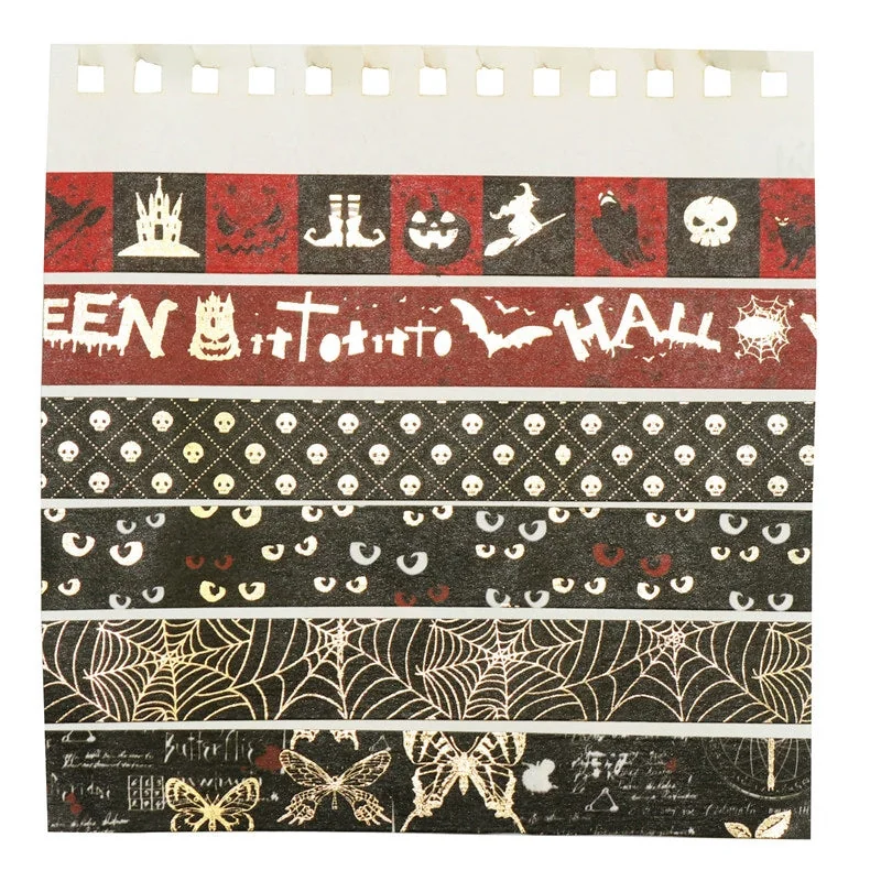 Elevate your Halloween crafting with our Gold Foil Halloween Washi Tape Set, a bewitching collection of 6 rolls featuring intricate and glamorous designs. Crafted from premium washi material, each roll measures 15mm (0.6 inches) in width and 5 meters (16.4 feet) in length, providing endless creative possibilities for your spooky projects.