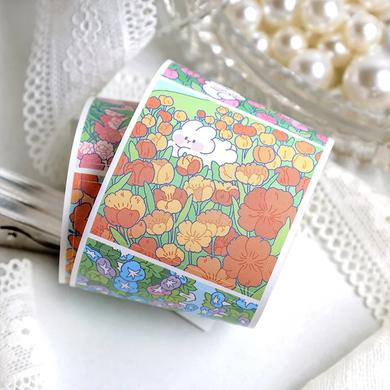 The adhesive is repositionable which is a game changer for journaling. I can move the Flower and Rabbit Cute Cartoon Sticker stickers without tearing my pages.