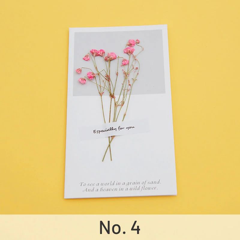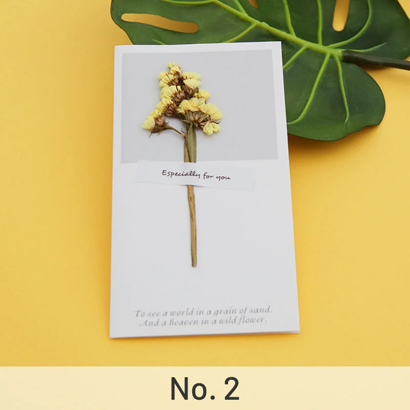 This literary preserved flower real flower greeting cardfeatures the real dried flowers. It contains a simple paper and some natural dried flowers, which make the receiver close to nature. A total of 9 styles to choose from. Except for the Gypsophila series which are artificial flowers, the others are real dried flowers. There may be a small number of flower crumbs falling during transportation, which is a natural phenomenon. It’s perfect forThanksgiving Day, Teachers’ Day, Mother’s Day, Christmas, etc.