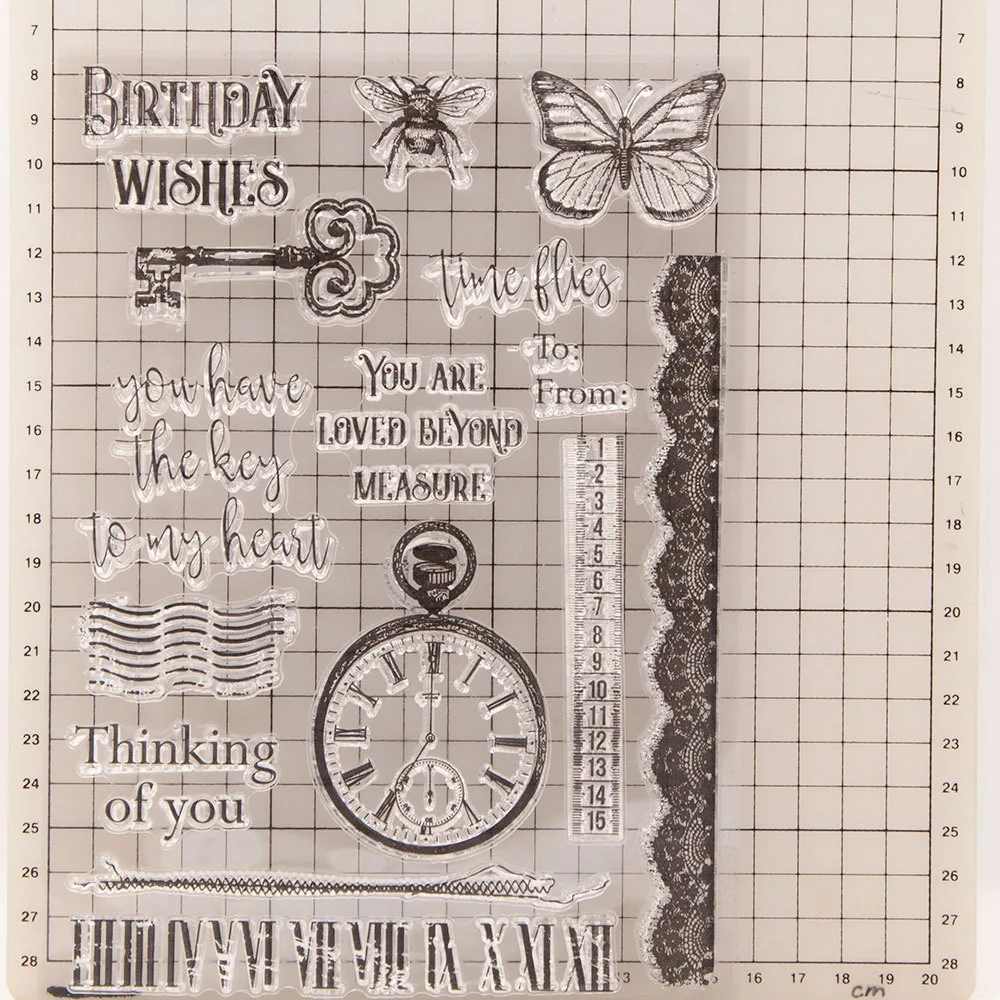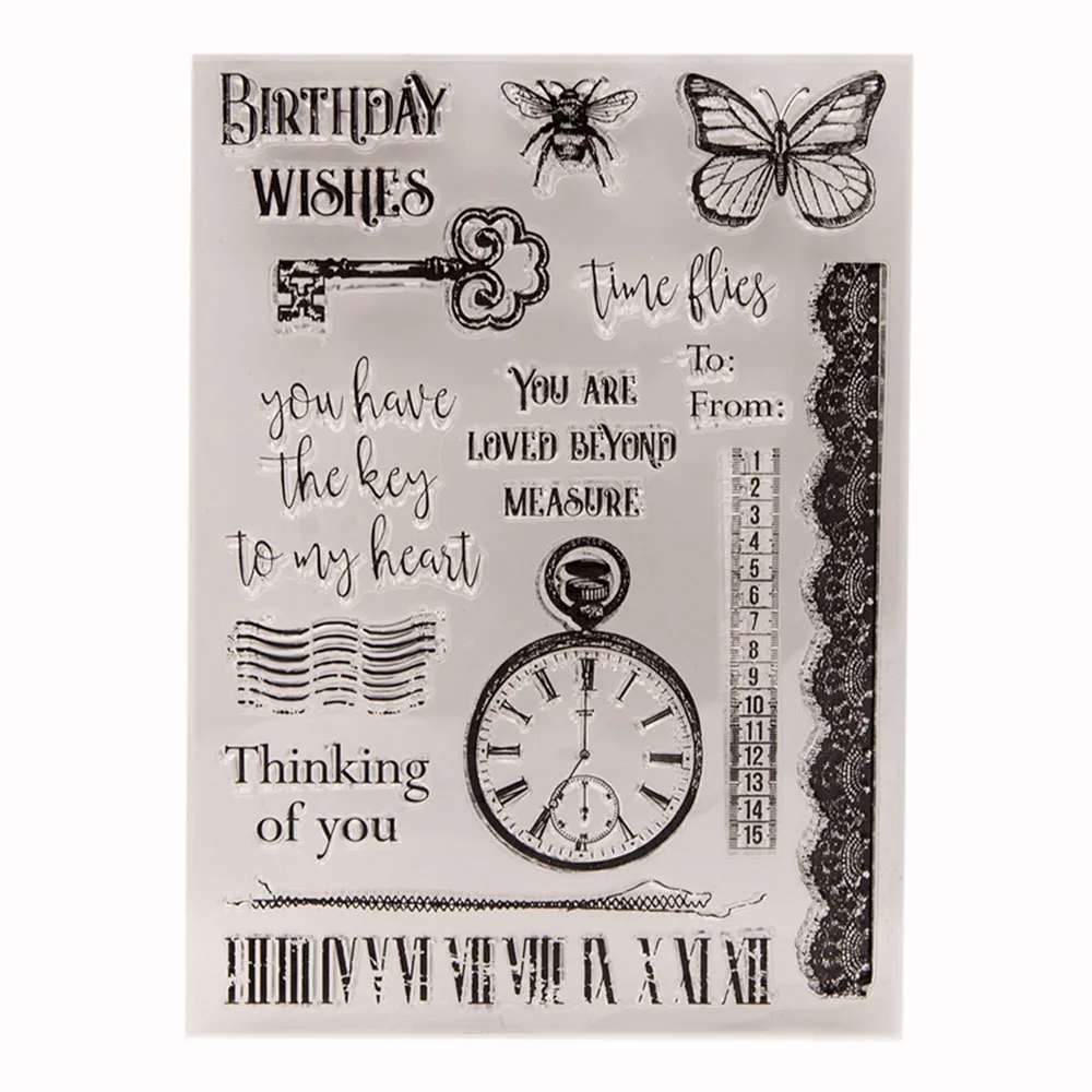 The Pocket Watch Letters Clear Stamp Set stamp set is absolutely lovely. Perfect for adding sentiment layers to cards. Very versatile!