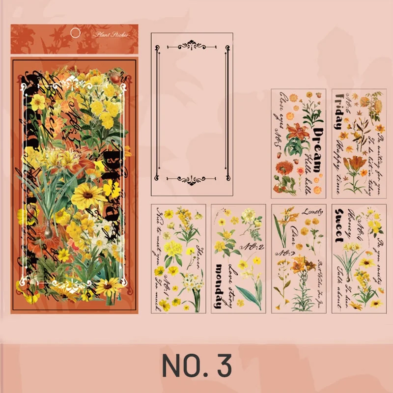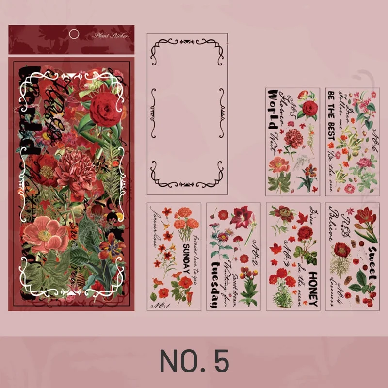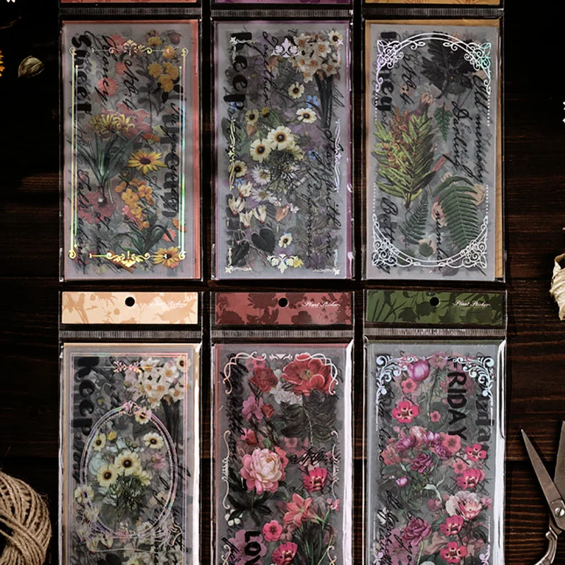 This vintage plants Polyethylene Terephthalate clear sticker has 6 different styles for your choice. Each pack contains 1 clear laser card and 12 translucent Polyethylene Terephthalate stickers. The clear laser card is made of PVC with no adhesive and the sticker is made of Polyethylene Terephthalate with PVC surface and Polyethylene Terephthalate backing paper. It’s transparent, wear-resistant and waterproof. The stickers include 6 designs and each design has 2pcs. Each sticker has clear printing and good stickiness and is easy to use. Peel off the backing paper, you can stick it on any surface you like. It’s great for decorating journals, scrapbooks, collages, planners, or any other artwork.