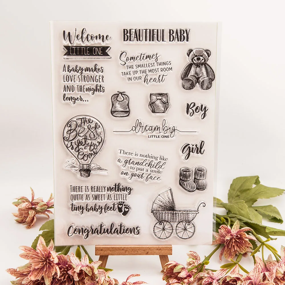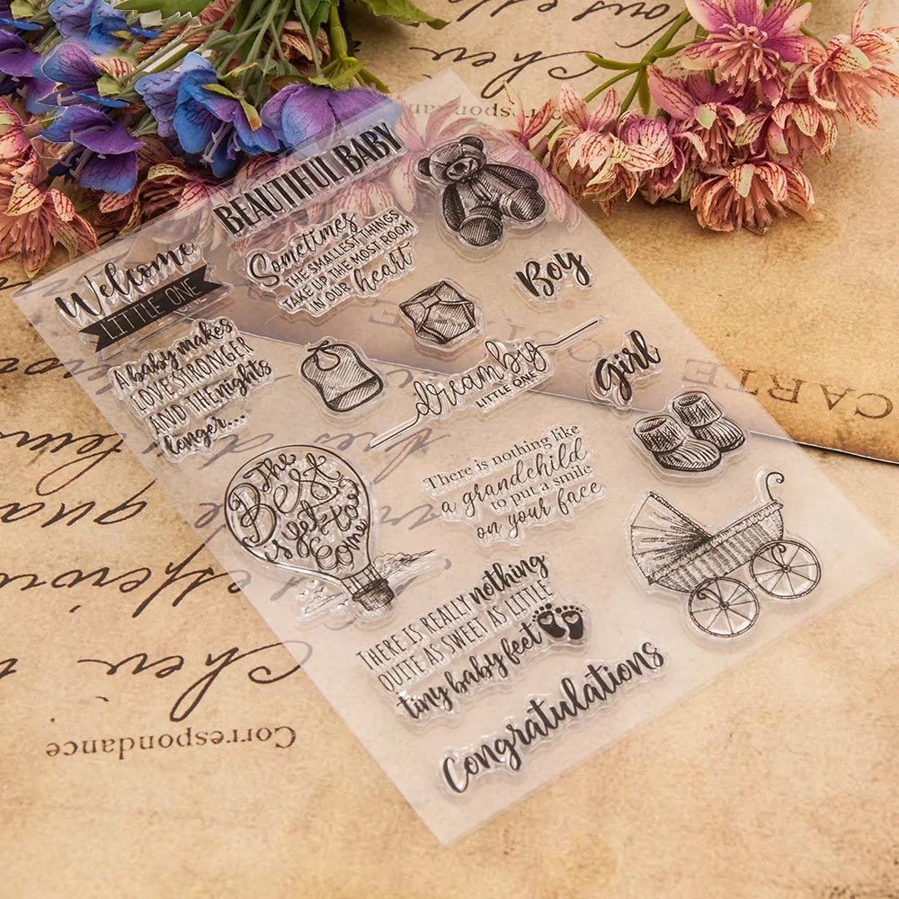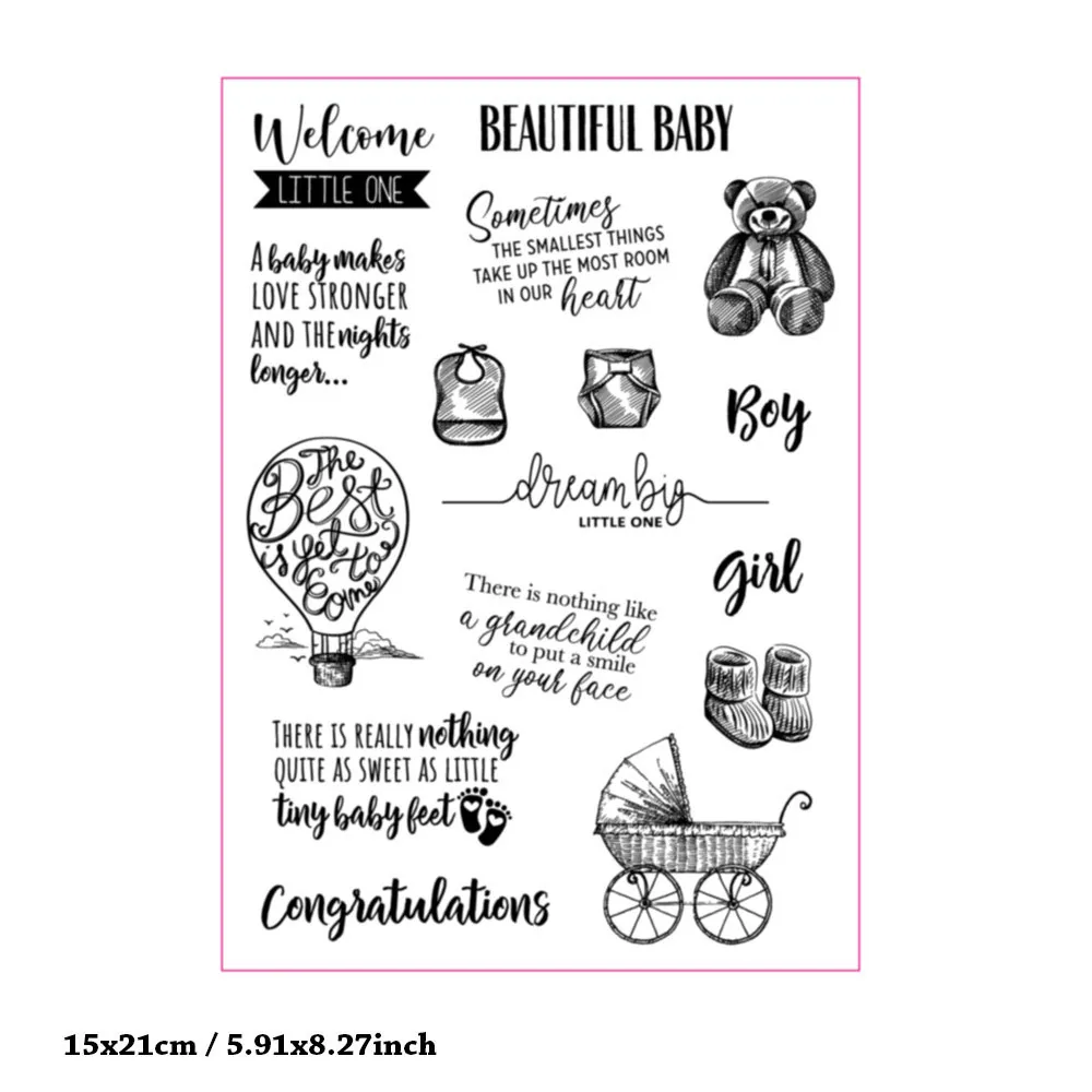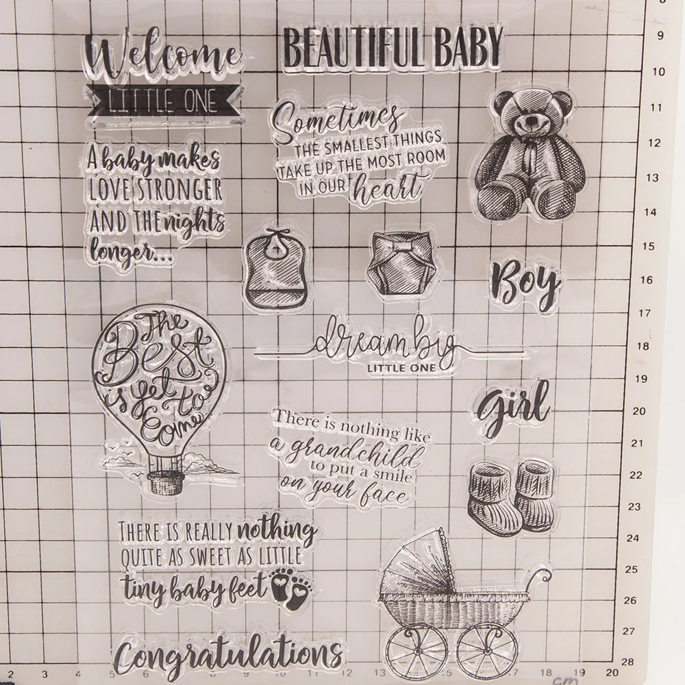 The Welcome Baby Letters Clear Stamp Set stamp set is absolutely lovely. Perfect for adding sentiment layers to cards. Very versatile!